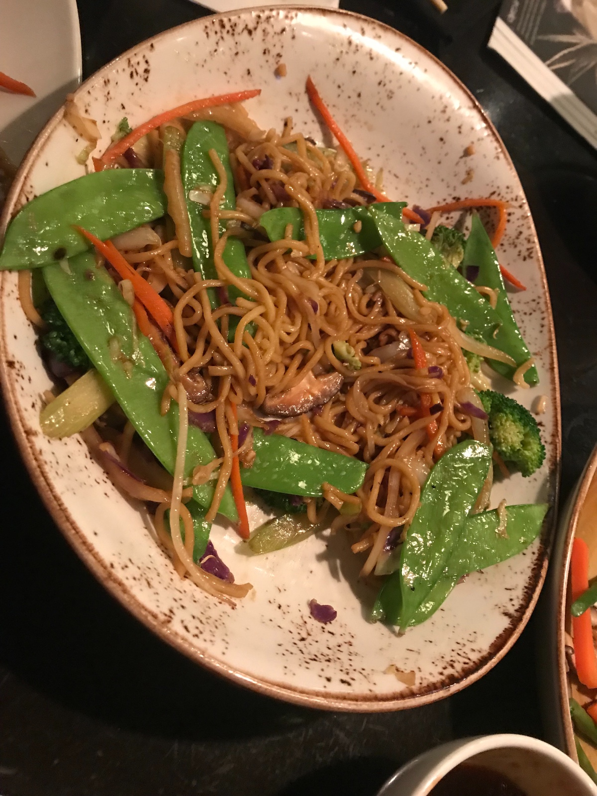 Dinner at PF Chang's. We had vegetarian lo mein and Buddha's feast with brown rice. It was delicious.
