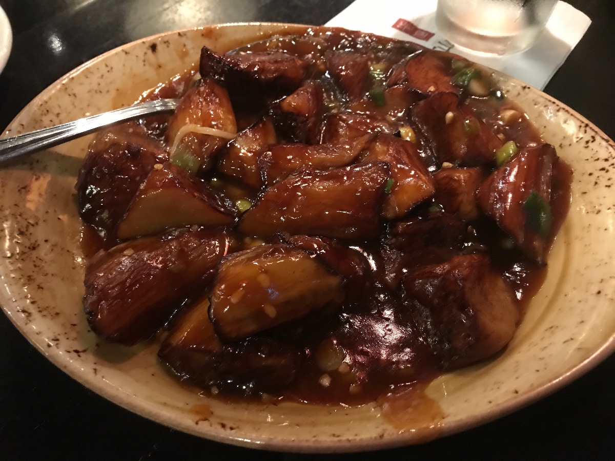 : Yes, it's eggplant. I don't think it's hot. You should try it sometime. It's really delicious.