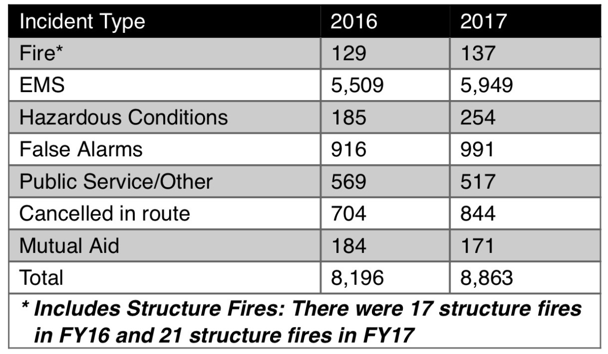 Of the 5,949 EMS calls in 2017, 52 percent were handled with only an ambulance compared to 29 percent in 2016 – a strategy identified by industry experts to better utilize personnel and equipment.