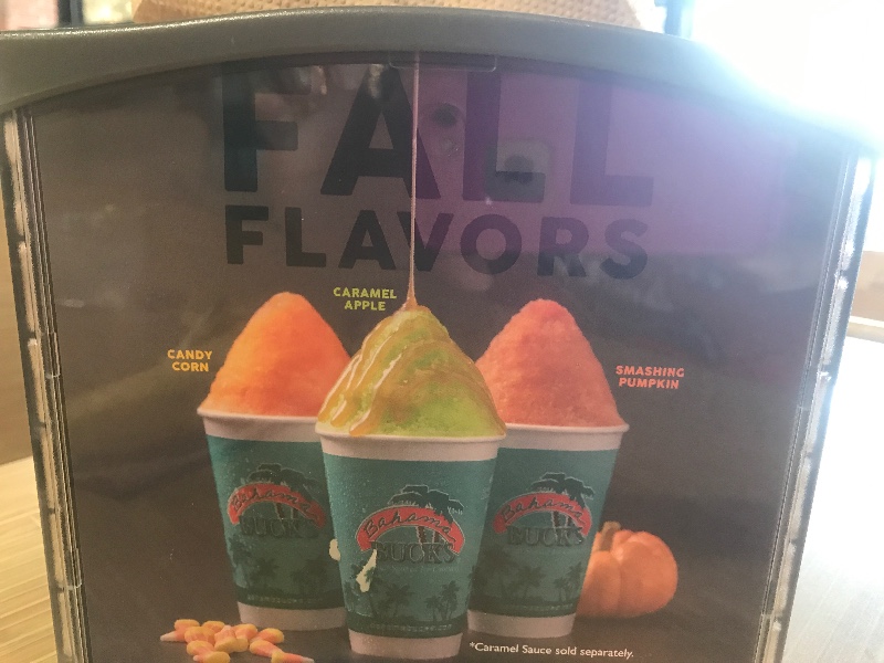 I love Bahama Bucks! We had the Mango flavored shaved ice. They have new flavors for the fall such as Candy Corn, Caramel Apple and Smashing Pumpkin.