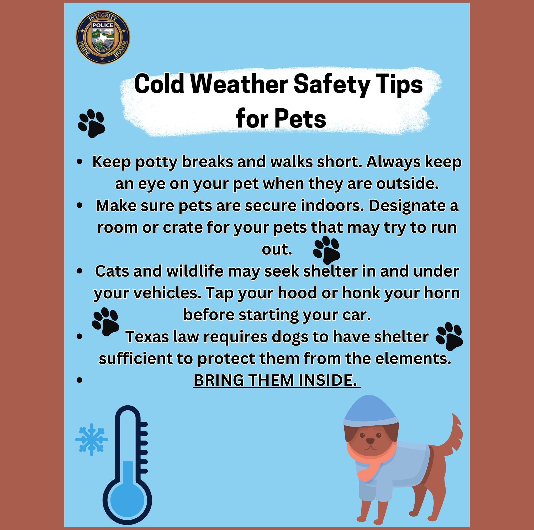Local Topic Cold Weather Safety Tips for Pets from Pearland Animal Services
