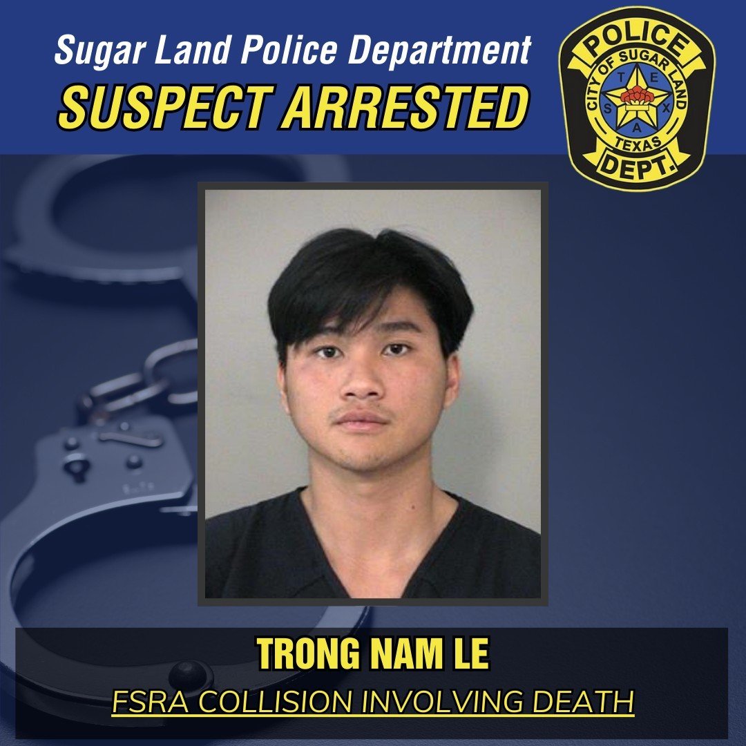In Texas, Failure to Stop and Render Aid (abbreviated FSRA) is also known as leaving the scene of an accident or "hit and run". On March 17, 2025, Shanila Imran of Sugar Land was involved in an accident on State Highway 6, but when she got out of her vehicle to inspect the damage, she was struck and killed by someone driving a Lexus automobile who did not stop, fleeing the scene. The next day, SLPD detectives located the Lexus, identified the driver, and arrested Trong Nam Le of Houston for FSRA Collision Involving Death, a 2nd-degree felony. Le was subsequently booked into the Fort Bend County Jail and is awaiting trial.