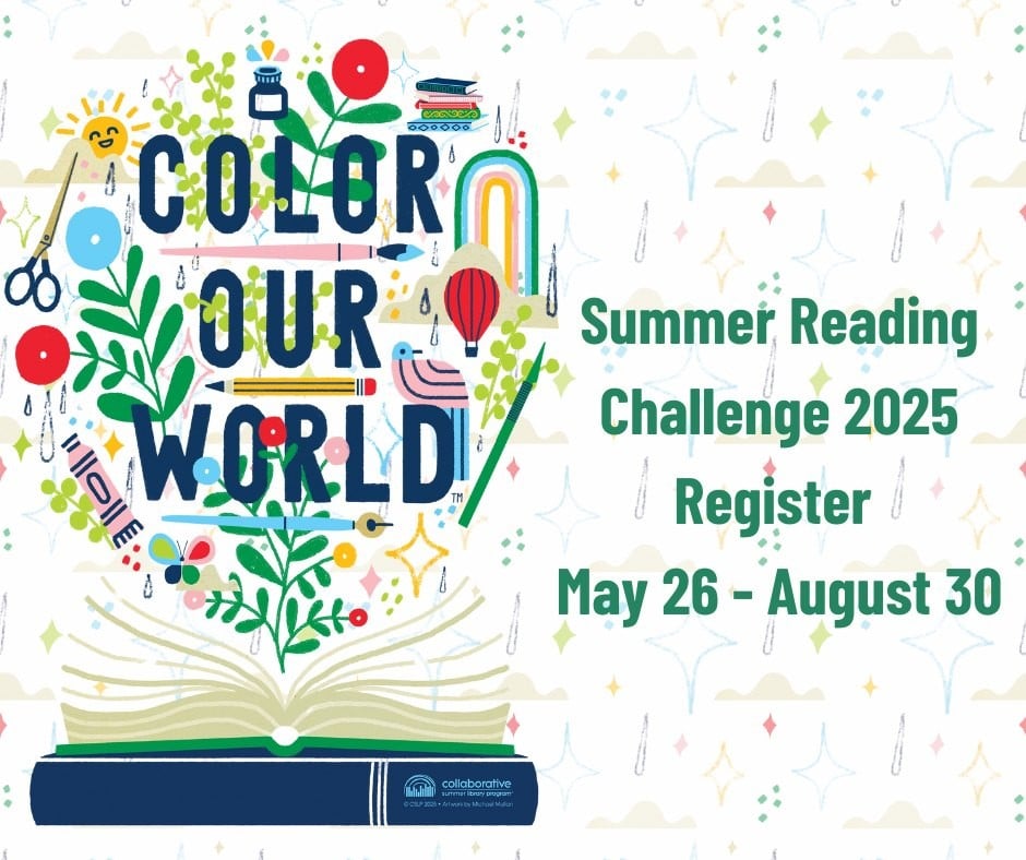 Online registration for the 2025 Summer Reading Challenge begins on Monday, May 26, and continues through August 31.
