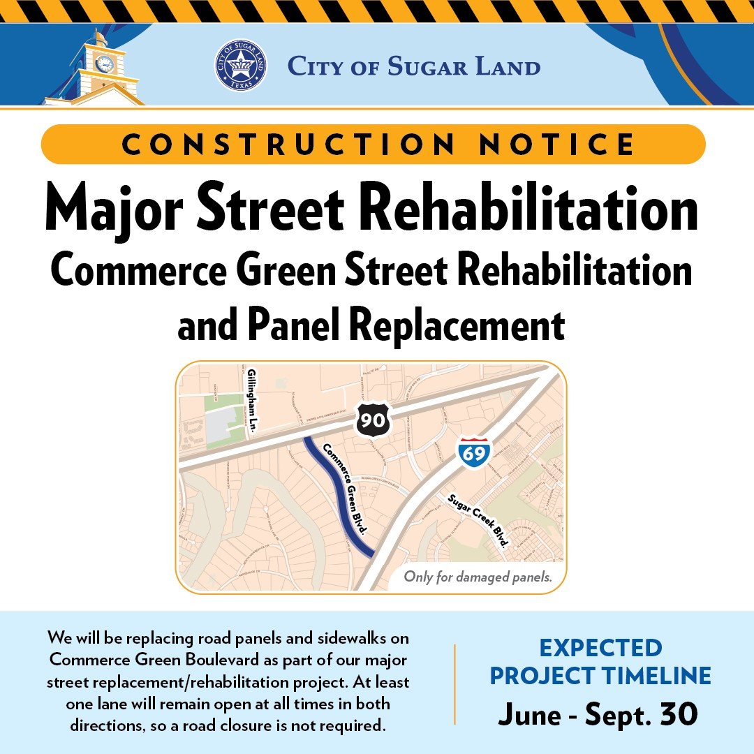This effort supports the Sugar Land Development Corporation’s goal of enhancing infrastructure within the Business Park District. Substantial completion is expected by October 2025.