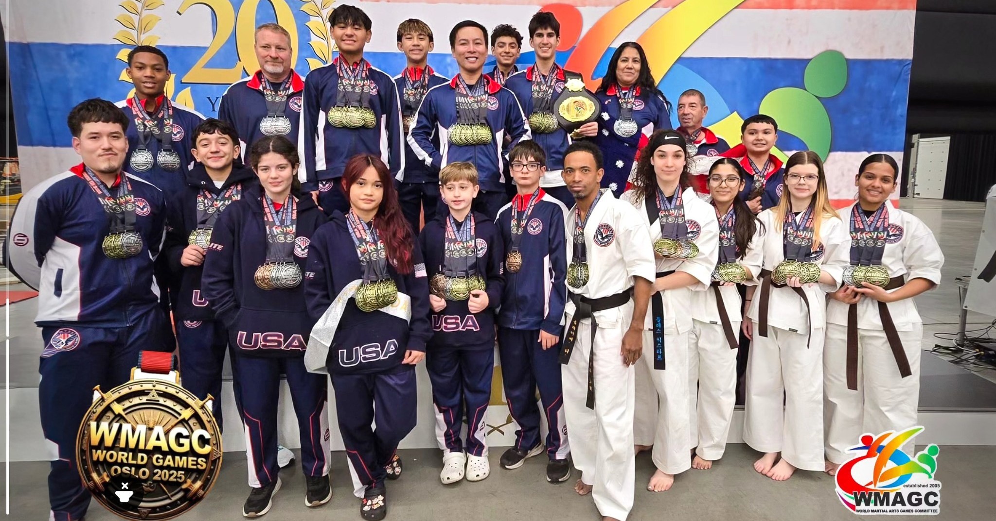 Representing the U.S. Martial Arts Team, Lily McConnell, Alainah Nabi, Teagan Nellippallil, Hyatt Nellippallil and Johanna Reyes earned nine gold, six silver and one bronze medal.