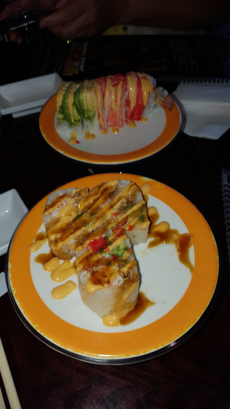 We tried the Sushi Choo Choo restaurant for dinner tonight. It was actually a great place to eat.... I am not a raw fish guy, but there is more to sushi than raw fish. My favorite was the Sweetheart Roll, which was deep fried salmon with avocado and what seemed like cream cheese and a sweet chili sauce.